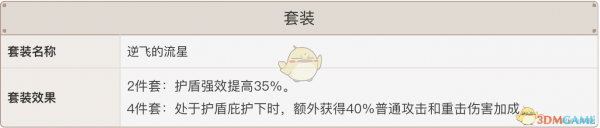 4件套:处于护盾庇护下时,额外获得40%普通攻击和重击伤害加成。