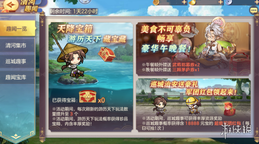 活动期间,每次刷新的游历天下玩法数量提升至3个,参与游历天下玩法既有概率获得「珍品宝箱」,可开启随机丰富奖励!