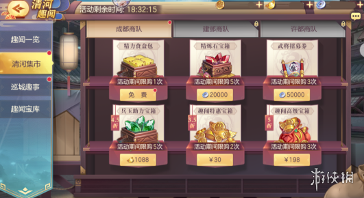 2、可消耗元宝购买含趣闻金币的各类资源宝箱;