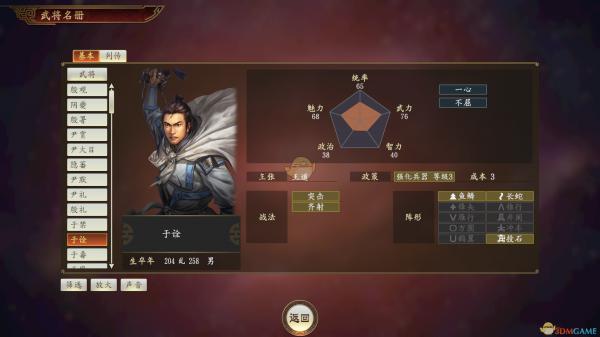 《三国志14》中的武将数量非常的多,玩家要从这款游戏中跳出适合小势力的武将还是有着一定的难度的,玩家“abcdqqq2”带来了众多武将中的于诠这一武将的点评,来看看小势力下其表情到底如何吧。