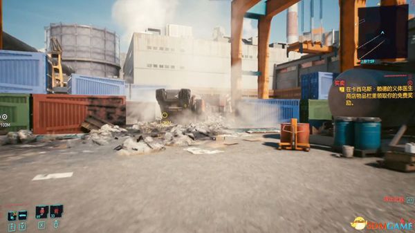 进入厂房空地,打开蓝色的集装箱(肉体6)。