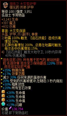 3、副手换成橙爪+怒击符文(使用岩石猛击消耗35点怒气,加70%伤害),武器换成套装+轰炸符文也可以。个人体验还是破面厉害点。