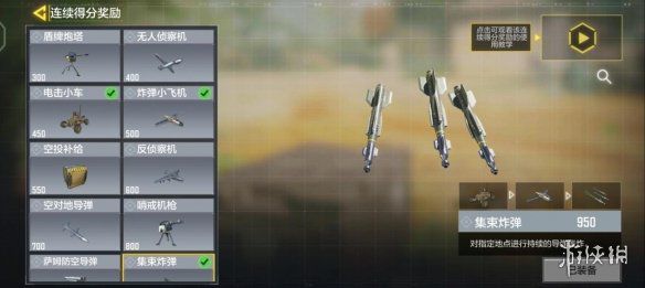 因为该模式节奏较快,连续得分奖励选择两个低分的炸弹小飞机、电击小车能频繁的帮助到你占据优势,同时带上一个集束炸弹,能够持续到压制固定片区的敌人,帮你取胜。