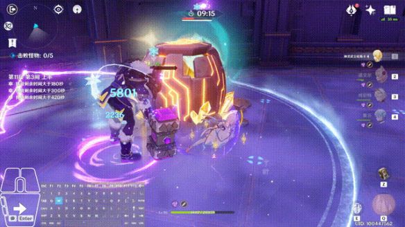 就是依靠怪物将荒星引爆,从而达成二段伤害。这种方式比较吃个人对怪物机制的了解,需要通过“勾引”怪物攻击来触发荒星二爆。下图是笔者本期深渊实战的一个片段,通过触发风拳的反击盾引爆了荒星,从而达到了二段伤害的目的。