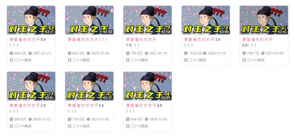 这是因为由BilibiliUP主三十六贱笑制作的《课 堂 请 勿 对 对 子》系列在B站动画区爆火的关系,该系列视频全程采用了动画《校园小子 愛の学校 クオレ物語》(简称《校园小子》)作为素材并自己配音,因为其魔性的配音以及层出不穷的神对而有着非常高的热度,期期都能登上动画区排行榜首页。