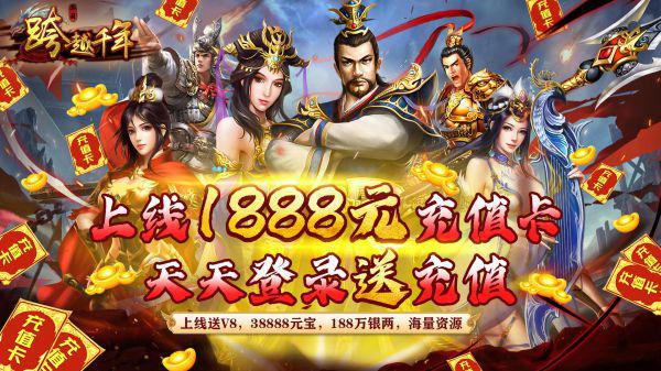 跨越千年(无限充值卡)再现经典三国战场,指挥多路三国名将,回合制战斗模式加即时国战控制策略游戏,超大实感地图,智能多部队行军,丰富的战斗体验和多样内政玩法,给你带来不一样的体验!辅助美人提供全方位挂机体验,烧脑而不伤肝,无尽的战法搭配,特色的宝物羁绊,能让你培养出不一样的英雄,打造精致的多路部队,在热血战场中全线出击!版本福利超强提升,创角即送1888元充值卡,还有一系列的实用福利,并且每日、每周、每月都有充值卡获取,游戏随处可见充值卡,完全不用担心没有元宝花,开启全民免费白嫖新时代!