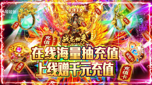 《战龙归来-无限送充值》是一款经典传奇挂机手游,游戏上线就送1000元的充值券,更有无限寻宝的精彩福利加持,让你在杀boss的途中一路披荆斩棘,无人能阻挡你前进的脚步,远古神器上线就免费获取,大量的元宝、装备杀怪就爆,装备无限回收,“648元大红包”、“328元大红包”等史上最大福利等你来拿。同时结合同台竞技,跨服boss、全民首领的终极玩法让你在称霸全服的目标昂首阔步,勇往直前。研发团队花重金打造的《战龙归来-无限送充值》,让技能更加炫酷,精确的音源位置、专业的卡肉硬直、配套的受击表现让打击感越发强烈,酷炫的装备和华丽的翅膀特效不断的冲击你的视觉感受。极品装备天凤羽翼、屠龙刀登录就送,多样福利拿到手软。