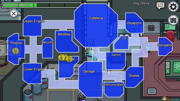 游戏中船员可以通过完成所有的任务获得游戏的胜利,每个人的任务内容略有区别,有的任务也需要合作进行,可以根据地图上的指示,前往即可,任务的形式都很简单,就是一些点点点的操作,有一点点英文基础即可。需要注意的是尽量避免单独行动,这样被K.O.了都没有目击证人。