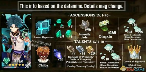 魈的突破材料需要打风无相获得的断片,然后要升到90级的话,那么还需要准备168朵清心。史莱姆凝液若干。天赋突破材料需要武炼之魂·孤影这个材料,是从公子副本里出的。以及繁荣的教导同系列的突破材料。