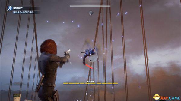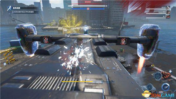 飞行器的最后一部分弱点位于机头下面,使用美国队长的盾牌,将其摧毁。