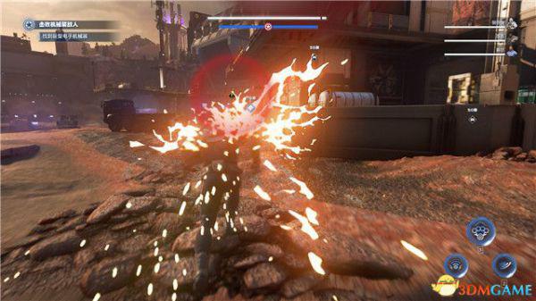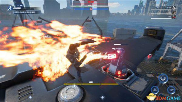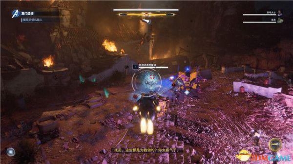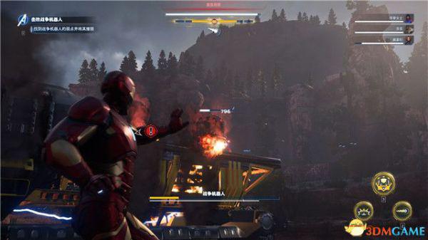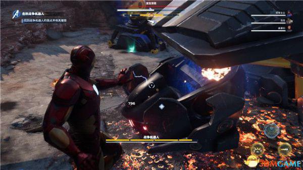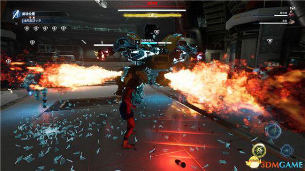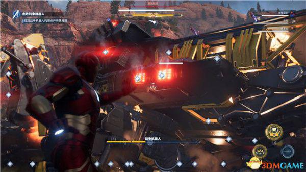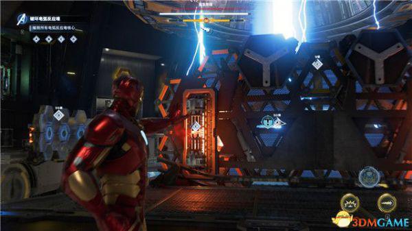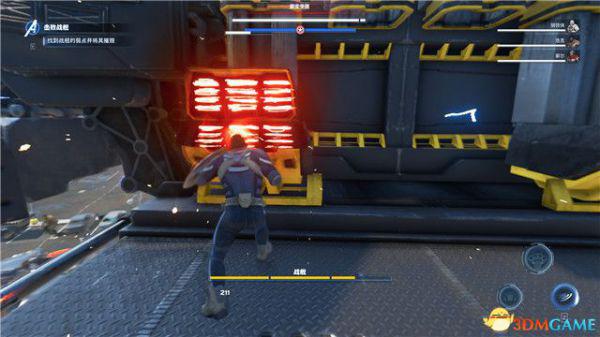 首先,使用钢铁侠,进攻BOSS脚部的四个加速器。