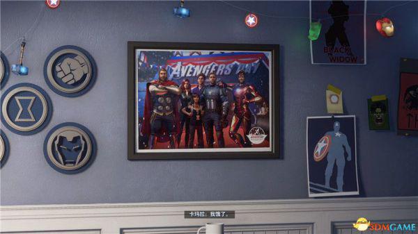 她屋子的墙上挂满了复仇者联盟超级英雄的照片,最后镜头定格在这张她与复仇者们的大合照面前。