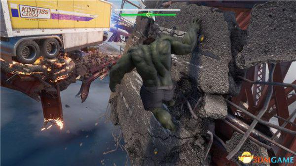 因此不能站在上面太久,尽可能跟随绿巨人的行动路线。