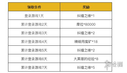 活动期间,累计登录七天即可获得纠缠之缘*10等奖励!