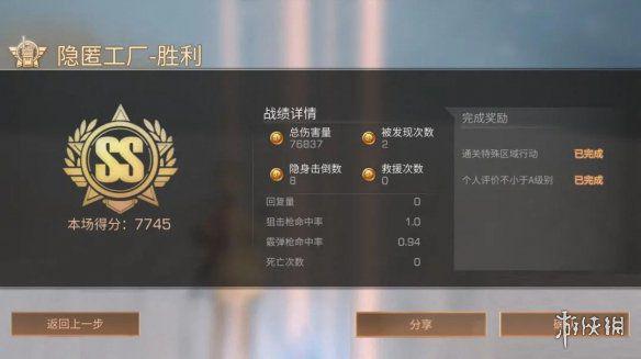 隐匿工厂评分主要根据总伤害量、隐身击倒数、救援次数以及被发现次数。