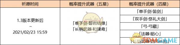 ●活动期间,四星武器「单手剑·笛剑」「双手剑·祭礼大剑」「弓·弓藏」「法器·昭心」「长柄武器·西风长枪」的祈愿获取概率将大幅提升!