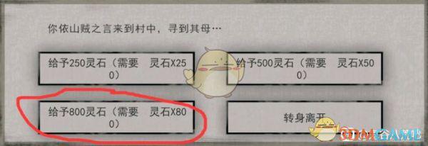 埋葬了二当家之后赶往愚村,触发二当家老母亲剧情,选择当好人,给予800灵石。