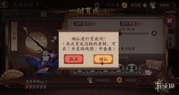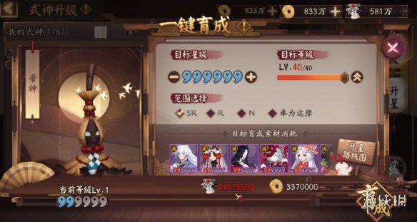最后,只要有足够的暴食鬼经验和金币就够了,点击育成就能将式神升到你想要的等级星级了!