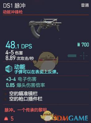 在《赛博朋克2077》这款游戏中,除了手枪这类枪械之外,还有着冲锋枪这类武器的存在,其中的DS1 脉冲就是大家比较常见的一种冲锋枪,玩家“小恶魔channel”带来了该武器的图鉴以及基础属性介绍,有需要的小伙伴就来看看吧。
