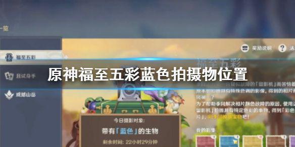 原神带有蓝色的生物?在哪拍?福至五彩活动已经正式开始了,这次的活动需要玩家通过拍照完成规定的任务,接下来就和小编一起来看看这次蓝色的生物拍摄位置。