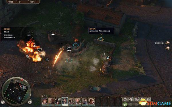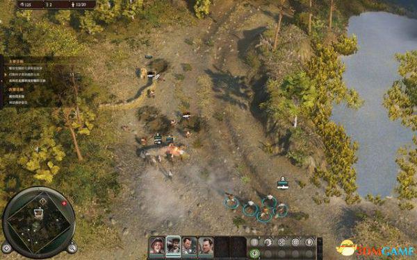 继续向左边的战俘营进攻,占领后拾取战防炮,这种笨重的火炮特别适合打击机甲。