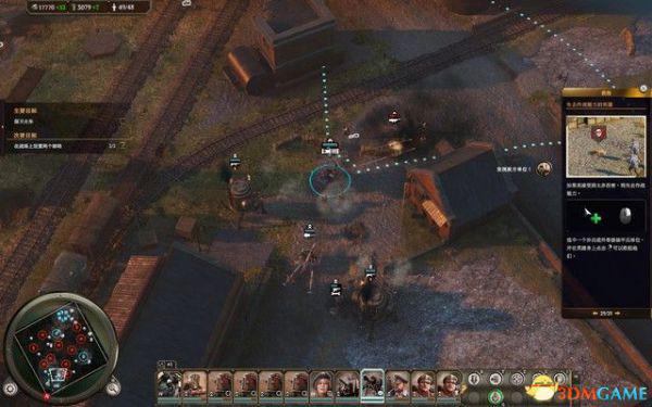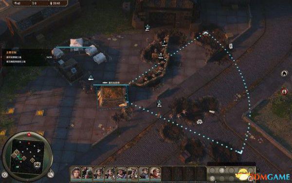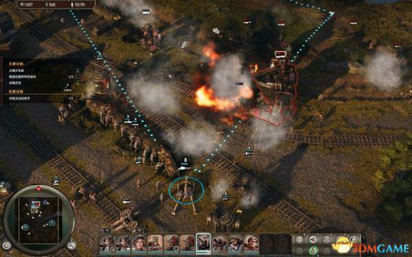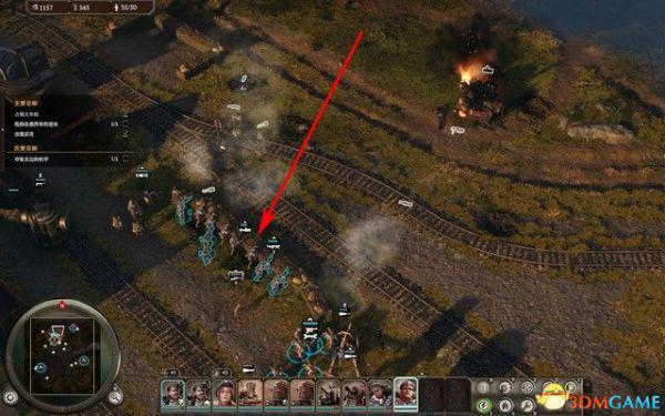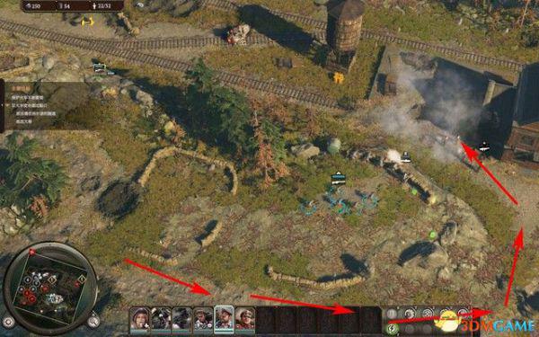 开局选择除了火车之外的所有单位沿着西侧轨道移动,消灭这里的敌人。