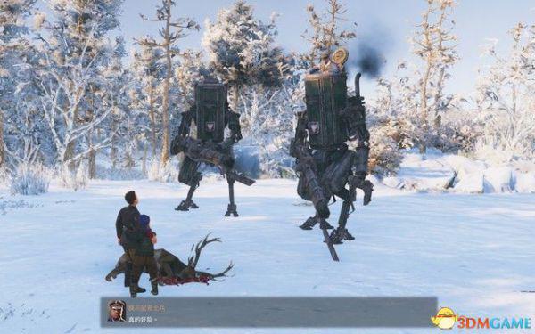 突然,一只熊向科斯扑来,紧急时刻被波兰尼亚机甲士兵所救,