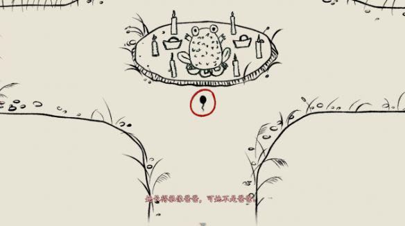 这时玩家会变成一只游动的小蝌蚪,而我们游动的“池塘”正是芳芳的“语文课本——小蝌蚪找妈妈”。在前进的过程中,看到她在课本上画出的“青蛙、蜡烛、元宝”围成一团的稚嫩涂鸦,其实表现的是她对“家人迷信巫婆附身之术”的困惑;而蝌蚪只能在狭小的河道中游动,则代表的是的芳芳桎梏于封闭守旧的家庭中。