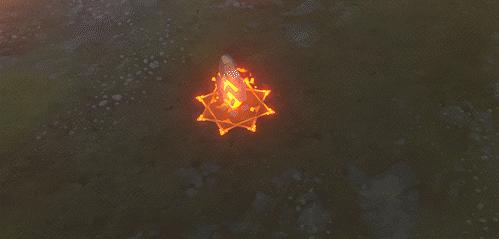 释放时发生剧烈爆炸对范围内的敌人造成伤害,并留下熔岩区域持续烧灼地面(约10秒)。造成火元素伤害。