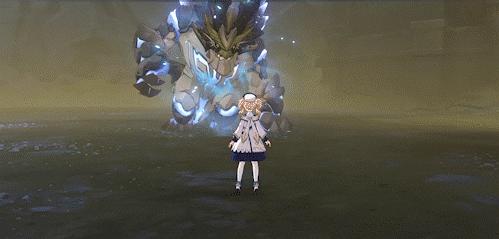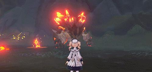 从古岩龙蜥的背部或尾部释放的元素刺,扎根于地面无法摧毁,短暂延迟的后释放其爆炸性的元素力。(随机延迟时间)