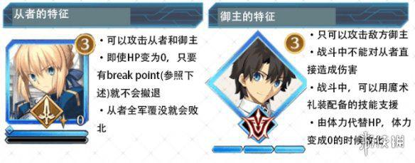 ②break point:从者的HP变成0的话就会消耗1点break point,HP全恢复。break point为0的状态下HP变为0的话,视为被击破,从者从地图撤退。