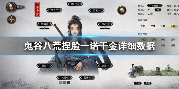 《鬼谷八荒》捏脸一诺千金怎么捏 捏脸一诺千金详细数据