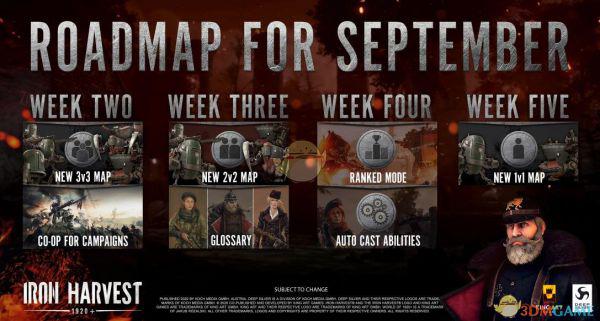 《钢铁收割》已经如约正式发售了,但发售之后并不代表着游戏就此停止更新了,官方后续还有这一系列的更新计划以带给玩家新鲜的内容。玩家“CC茶”带来了《钢铁收割》9月更新路线一览,感兴趣的小伙伴就来看看吧。