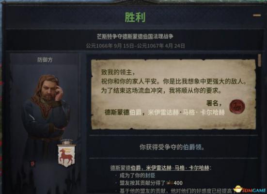 其中比较特殊的是降服,降服战胜后可以直接让对方成为我们的封臣,