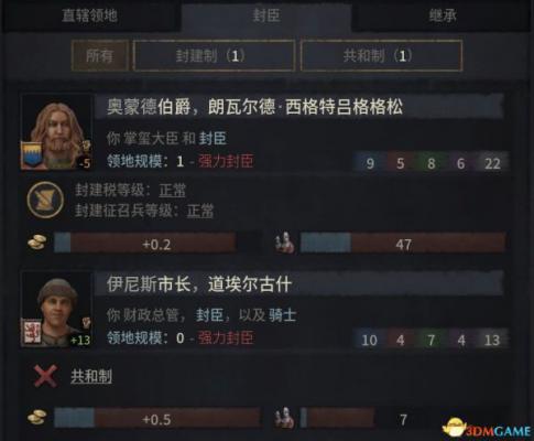 无论玩家是何种等级的领主,基本上都是依靠直接管理领地+将领地分给封臣这两种方式来统领自己的土地。