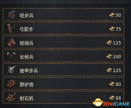 游戏中的主要军队组成为征召兵,骑士和兵士军团。