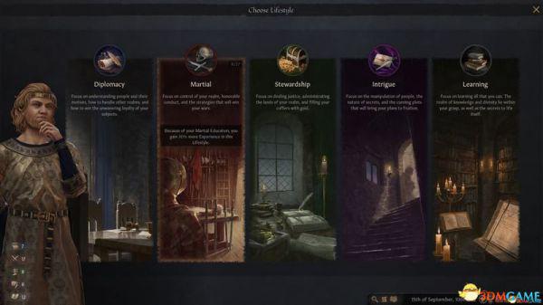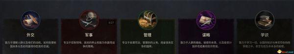 游戏中一共有五种生活方式,外交、军事、管理、谋略。