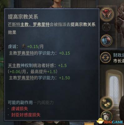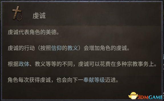 虔诚则是代表角色的美德(通过学识能力和一些特质被动持续获得),按照教义行动可以增加虔诚(例如朝圣等活动)。