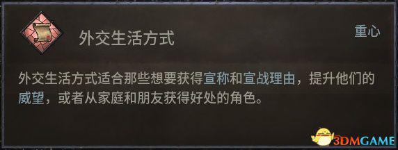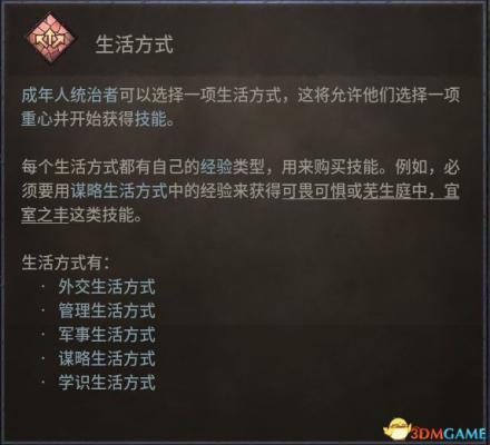每种生活方式分别有三种生活重心,选择某种生活重心后会获得改生活方式的额外经验。