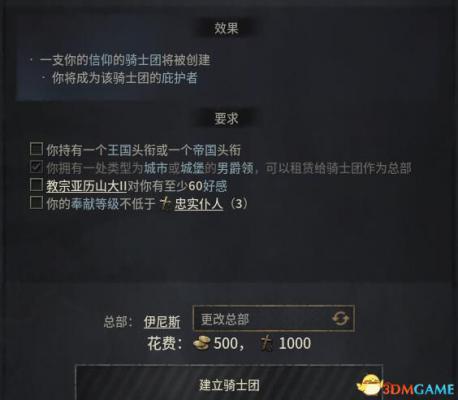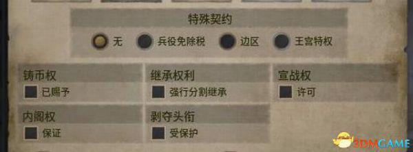王宫特权:减少税收和雇佣兵贡献,但能每月提高领主和自身的威望,同时增加谋略成功率。