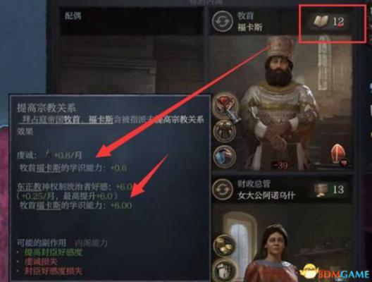 学识:增加虔诚值,降低君权威望的花费。更容易改变他人的信仰。