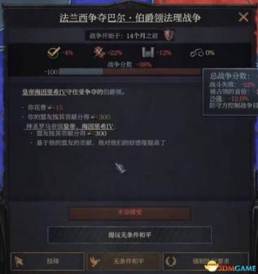 关于战争最后的结果,需要我们完成三种事件之一,分别是投降,无条件和平,强制执行要求。