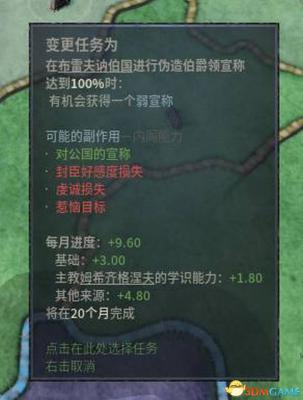 可以一定概率获得目标伯爵领的宣称,这也是我们前期获得宣称的主要方式。