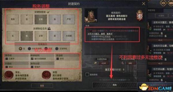 我们可以根据自己的游戏方式修改继承法,修改时需要花费一定的威望,并获得强力封臣的赞同。