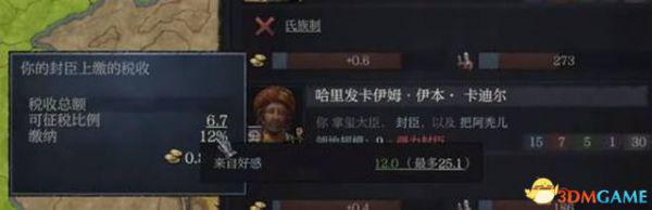 某一氏族封臣提供的税收和征召兵数量大部分取决于该封臣对领主的好感度,当然提高军权能够提高交纳的最低值。