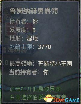 在地图上任意点击地产都能看到其归属、发展度、地形和补给上限等基础数据。