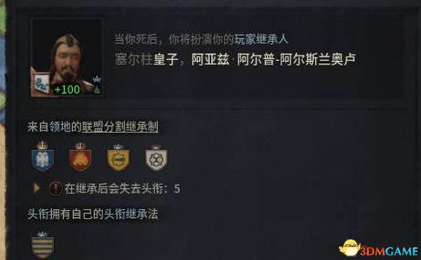高等分割继承制:分割头衔时,玩家继承人会获得至少一半的头衔,这样分裂的情况就会比较少。这是在我们获得单继承制之前比较合适的过渡继承法。