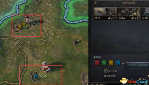 当要集结军队时需先设立一个集结点,可以设置在任意直辖领地内。