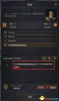 此外还可以向统治者请求目标头衔的宣称,需要消耗一定的资源,也就相当于购买宣称。