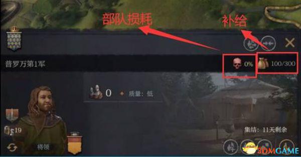 当军队补给减少到一定程度时,会降低战斗优势,如果减少到0,则部队会开始损耗。